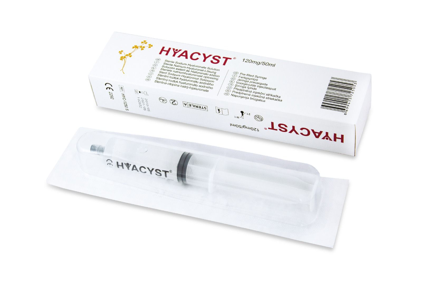 HYACYST geçici olarak mesane duvarındaki yetersiz GAG tabakasının yerini alır.Bu sayede ağrıların ve interstisyel sistite bağlı sık sık ve acilen idrara çıkma semptomlarının azalması sağlanır.Yine araştırmalar diğer tedavi yöntemlerinin yetersiz kaldığı durumlarda bile HYACYST’in bu tür ıstırap verici semptomlarda ferahlama sağladığı görülmektedir.